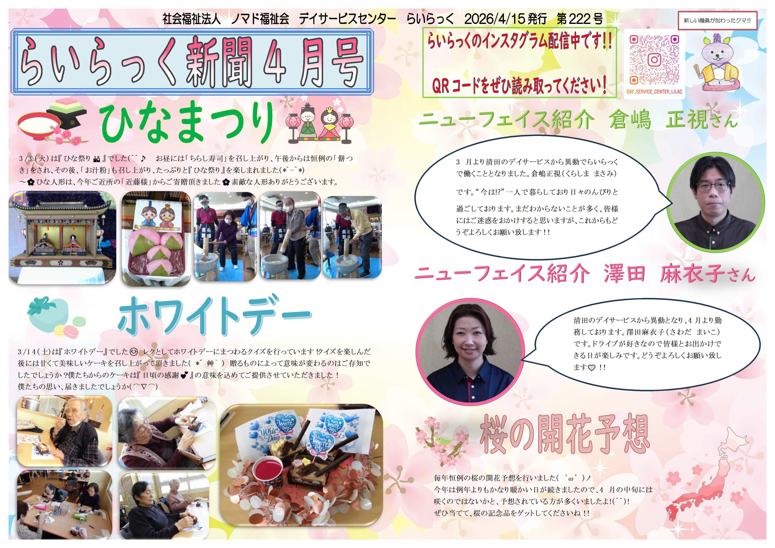 デイサービス『らいらっく新聞 4月号』発行のご案内